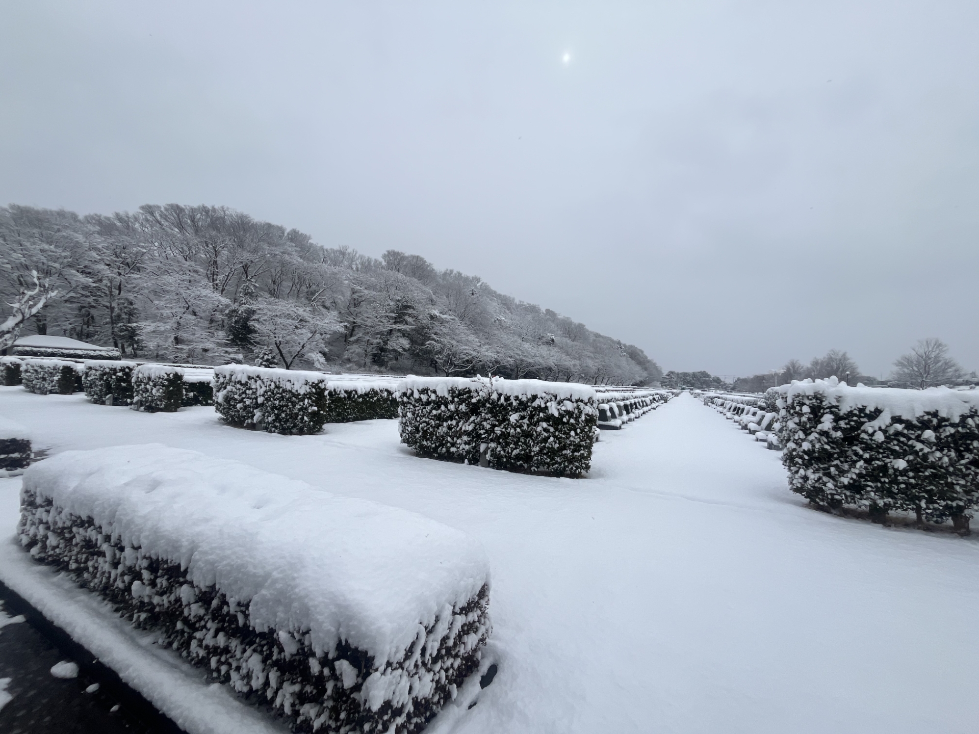 峰山霊園の芝生が一面雪化粧をした様子はとても感動的でした。