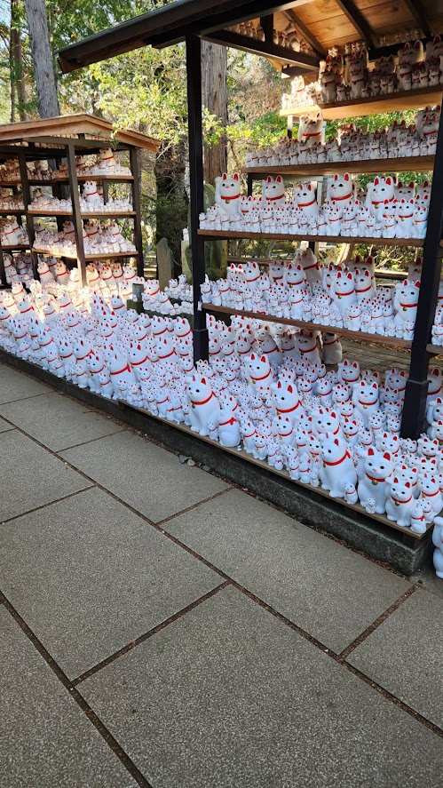 数年前に買った招き猫の置物を奉納とそのお礼するためと新しい招き猫の置物をいただくためです。