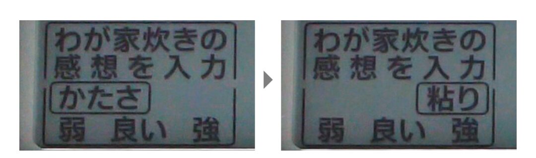その名は象印さんの炎舞炊き。炊飯したあとに毎回今日のご飯は硬かった、やわらかかったなど感想を入力していくと自分好みの食感に近づけて炊いてくれるという優れものです。