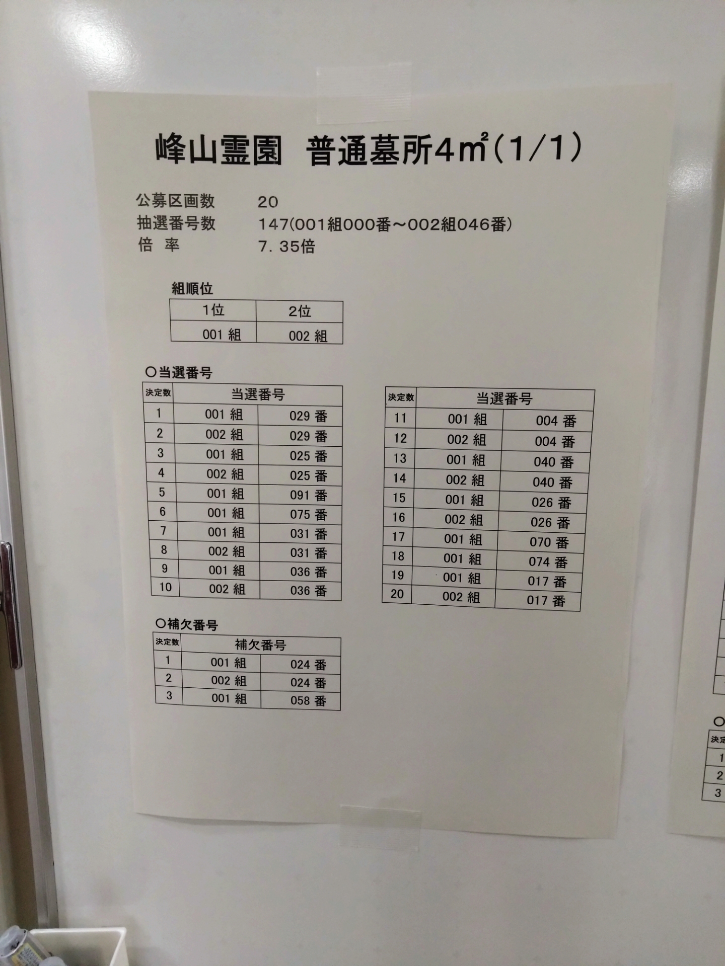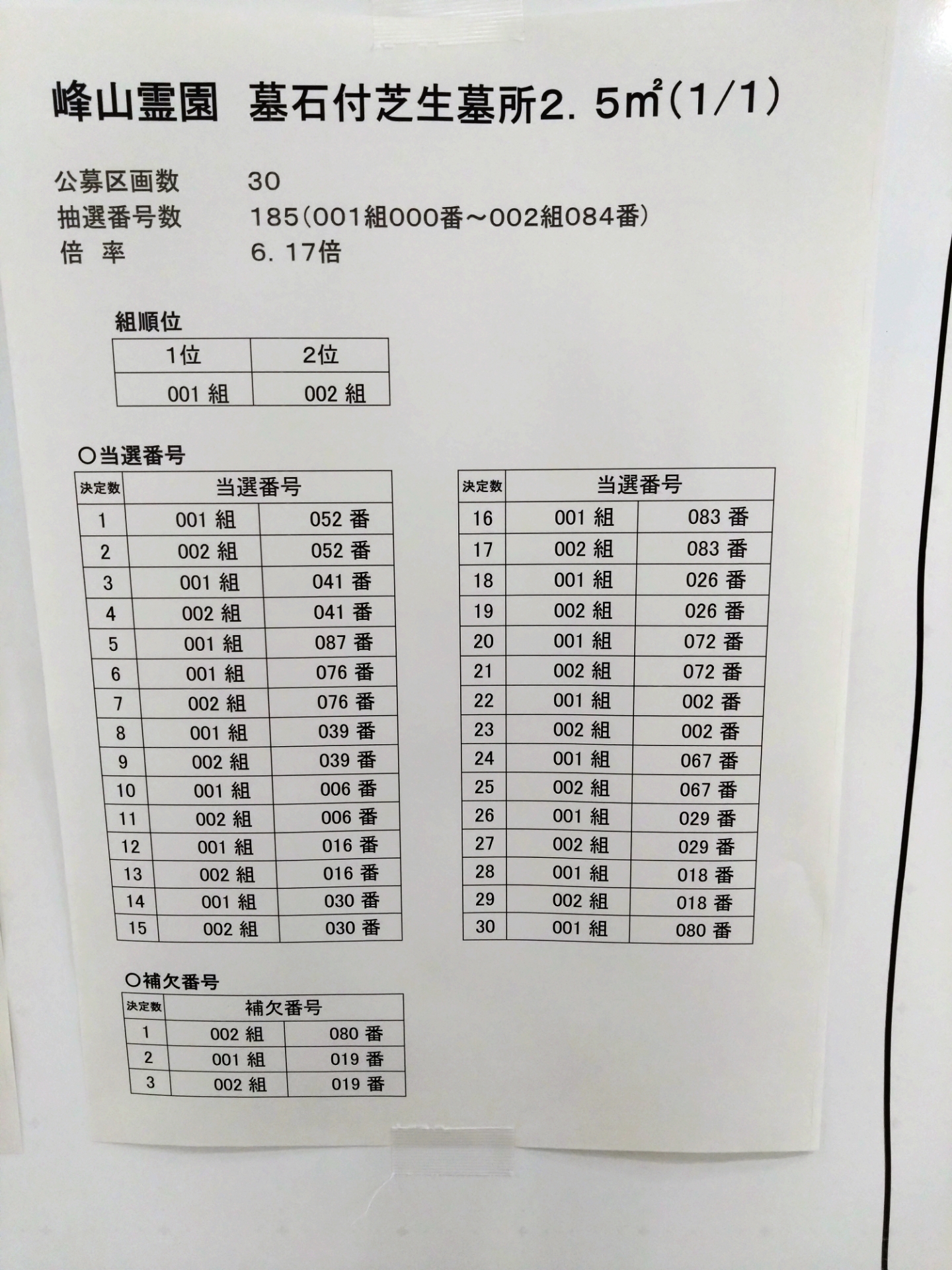 令和7年10月24日、本日峰山霊園公募の抽選発表がございました。